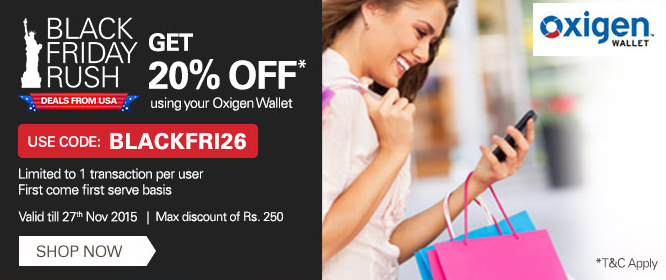 Ebay is celebrating Black Friday in India – Deals from USA at lowest price ever. Shop on Ebay today and save big – Pay using your Oxigen wallet and get flat 20% discount on your purchase (Upto Rs.250). This offer is exclusively valid for 2 days only. Join the Black Friday Rush today!