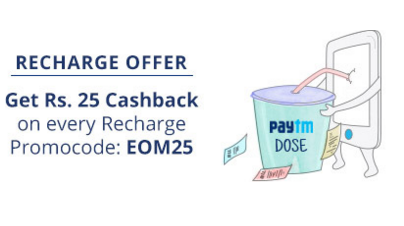 Paytm brings a loot offer on recharges where you can get Rs.25 Cashback on Prepaid & Postpaid Recharges of Rs.250 or more. This offer is valid for 5 times a user. Grab this offer now!
