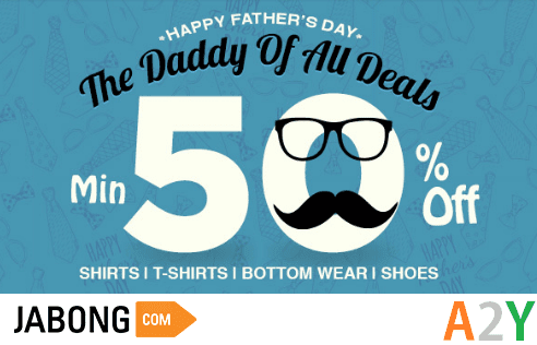 Jabong is now offering Minimum 50% off on exclusive Father’s Day Special Men Clothings including Shirts, Trousers & etc + Upto 20% off + Extra 10% Cashback via Oxigen Wallet . Hurry Up grab this offer fast!