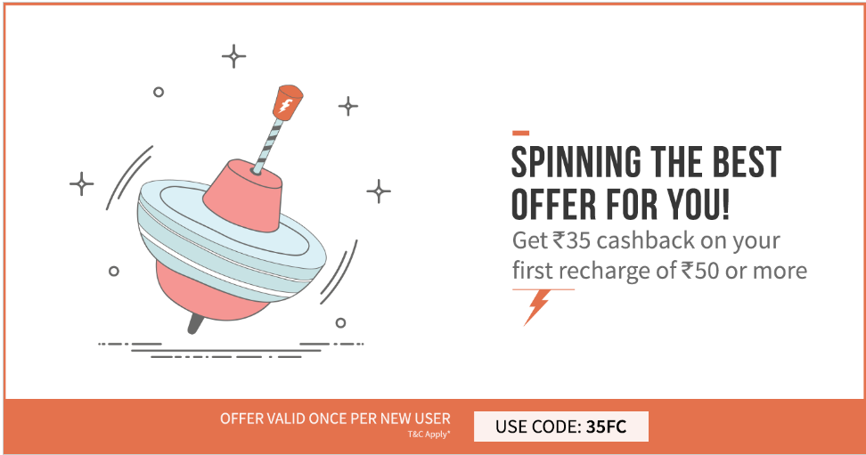 FreeCharge as always, Offers great Cashback offers on Recharges & Bill payments. This time get Rs.35 Cashback Pre-Paid Recharges or Postpaid Bill Paymentworth Rs.50 or more. This offer is valid for all New Freecharge users only.