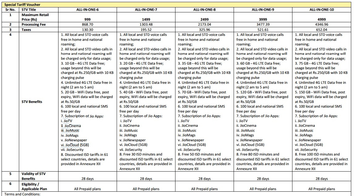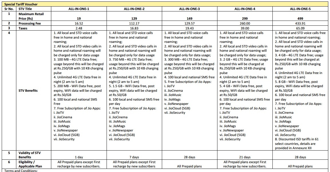 Ans- JIO tariffs available from Rs 19 to Rs 4999. Read this article to know more about the plans or refer the images below. Reliance Jio Plans Explained, Are They Really Low Cost? All You Need to Know