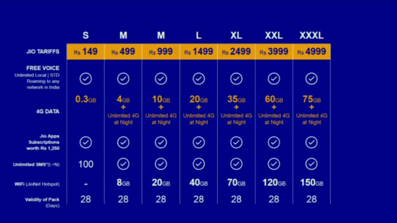 - Jio XXXL Plan (Rs.4999) – 75 GB Data | 150 GB Wifi | Unlimited SMS + Night Usage