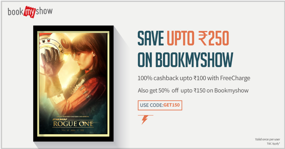 • Also get 50% off upto Rs.150 on Bookmyshow using code GET150 on booking minimum 2 tickets