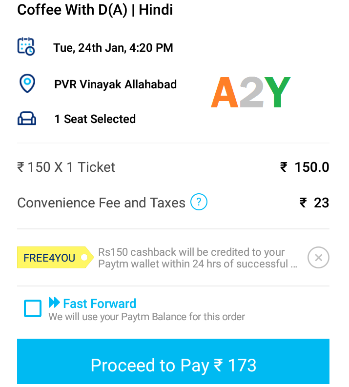 Get 100% Cashback on your first movie ticket booking upto Rs.200 only. Best thing is that the offer is valid for all paytm users who havn’t used paytm ever before to book tickets. Grab this offer now!