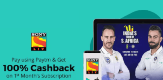 Paytm Offer: Get 100% Cashback on 1st Month Sony LIV Subscription