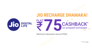 PhonePe Offer: Get Rs 75 Cashback Jio Recharge of Rs.399 or...
