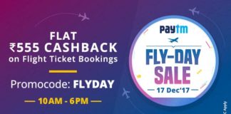 (Over) Paytm FLYDAY: Flat Rs 555 Cashback + Free Meal with...