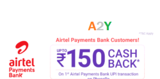 PhonePe – Get 50% Cashback on 1st UPI Transaction via Airtel...