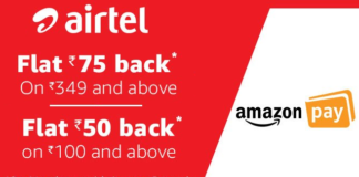 Amazon – Get Upto Rs 75 Cashback on Airtel Recharge (1st...