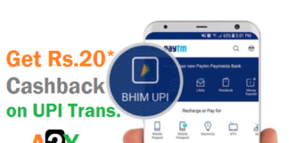 Paytm UPI – Get Assured Rs 20 Cashback on Sending Money...
