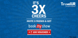 (Loot) TravelUR-Refer 3 friends and get Rs. 100 BookMyShow Voucher