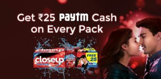 Paytm – Get Rs 25 Paytm Cash on Purchase of Closeup...
