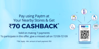 Paytm Offer: Get Rs 70 Cashback on Paying at your Nearby...