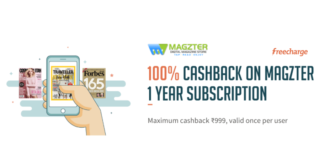 FreeCharge- Get 100% Cashback on 1 Year Magzter Gold Subscription