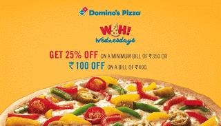Domino's Pizza is offering Flat 25% off on Pizza worth Rs.350 or more with this offer pay with Mobikwik wallet to get extra cashback...